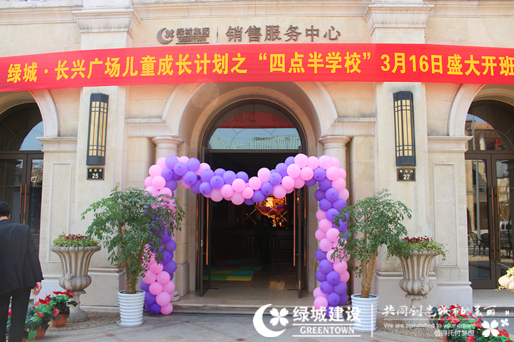 2014年3月16日下午, 绿城•长兴广场销售服务中心热闹非凡,36位4至10岁的小业主们在爸爸妈妈的陪伴下,参加了"四点半学校"的开班仪式。